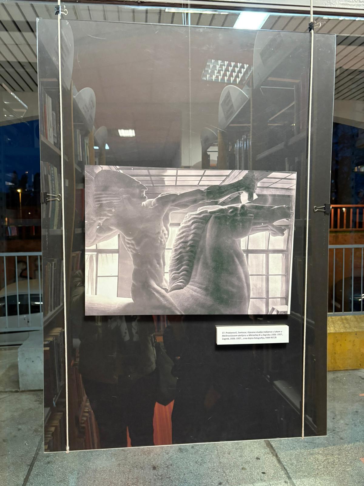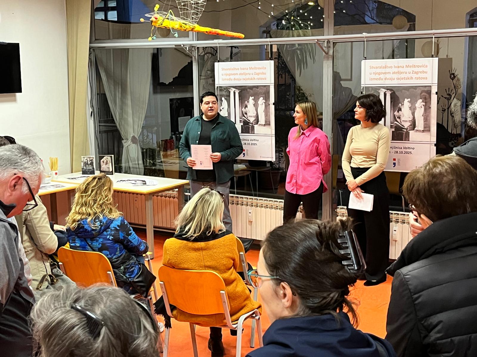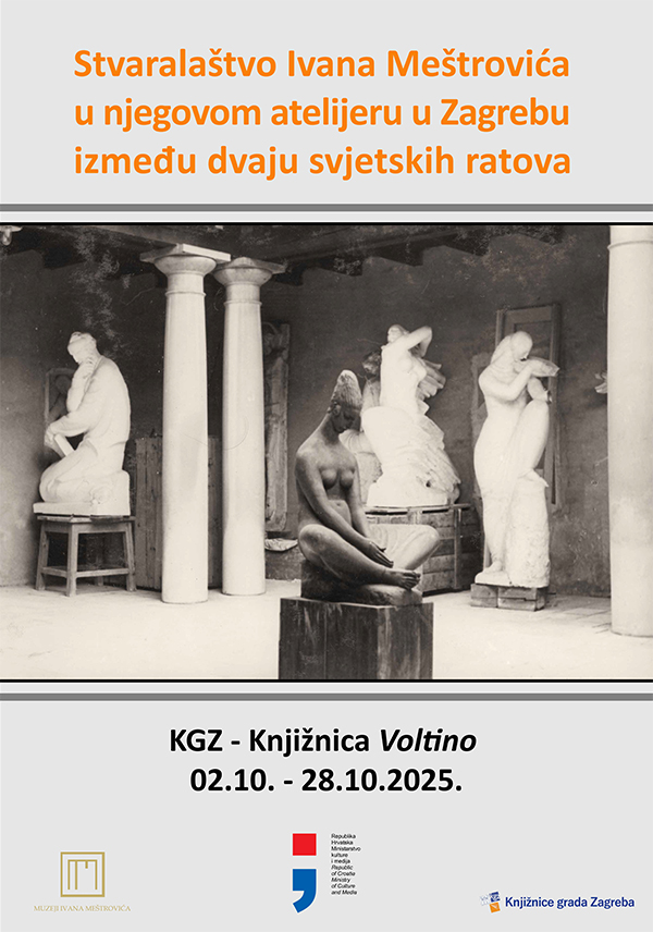 U Knjižnicama grada Zagreba – Knjižnici Voltino izložene su 22 reprodukcije crno-bijelih fotografija fotografa Vjekoslava Cvetišića, Svetozara Prodanovića, Milana M. Prodanovića i nekolicine anonimnih autora, iz 20-tih i 30-tih godina 20. stoljeća, koje prikazuju Ivana Meštrovića i njegova djela u umjetnikovom atelijeru u Mletačkoj 8 na Gornjem gradu. U zagrebačkom međuratnom razdoblju Ivan Meštrović se vraća svom klasičnom izričaju i radi na skulpturama u različitim materijalima raznovrsnih motiva, stvara brojne crteže, litografije, nacrte građevina, namještaja i uporabnih predmeta… Neka od najpoznatijih djela ovog perioda nastala u zagrebačkom atelijeru su gipsane studije za Spomenik Grguru Ninskom (1926. – 1927.), Indijanci (1928.) i Povijest Hrvata (1932.). U sklopu izložbe održant će se 4 likovne radionice s osnovnoškolcima, gdje je cilj upoznati i približiti djeci lik i djelo velikoga Ivana Meštrovića.